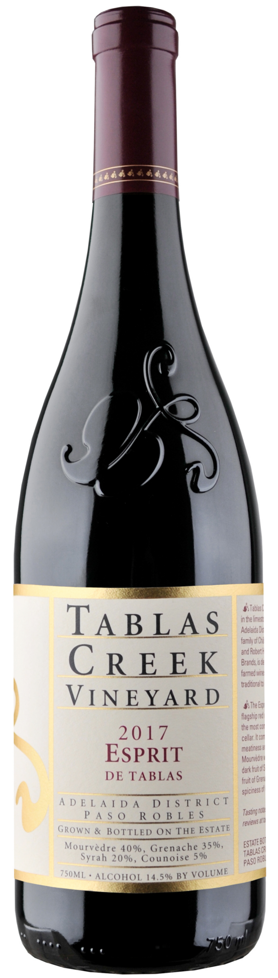 The Esprit de Tablas is produced from 100% estate grown fruit. Located twelve miles from the Pacific Ocean and with an average altitude of 450 metres above sea level, the estate’s hot and sunny days are tempered by cool nights, resulting in fully ripe grapes with fresh acidity. The site is dry-farmed, and certified organic and biodynamic. Its shallow, rocky and limestone-rich soils are based on the same geologic origins as the Beaucastel vineyards and the estate vineyard was planted with cuttings imported from the Beaucastel estate.